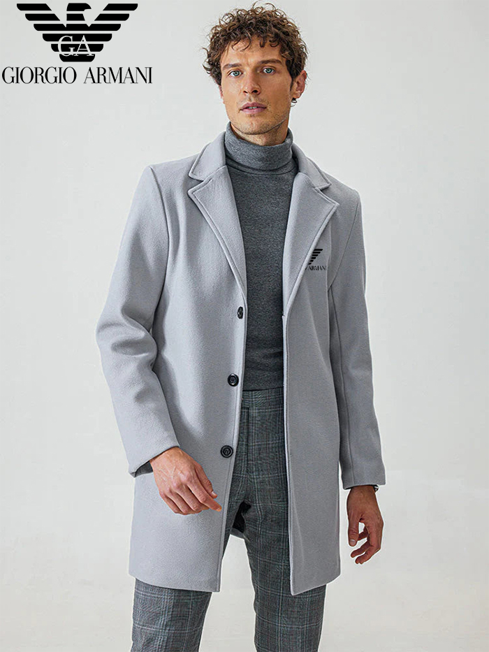 Jellemzők: Ez az Armani® férfi kabát klasszikus szabású, egysoros kialakítással és 3 gombos zárással, hosszú ujjal, bevágásos gallérral és egyszínű.