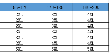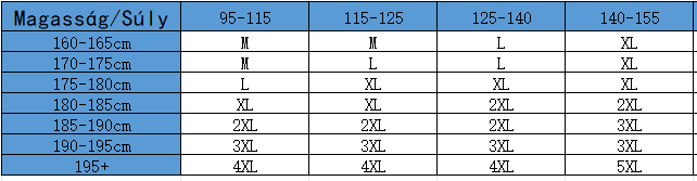 Mérettáblázat: