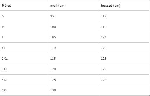 Méret táblázat: